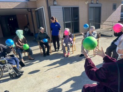 暖かい日を浴びながらの外でのレク(^▽^)/
